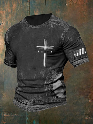 Men's Vintage Faith Cross Print Casual T-Shirt
