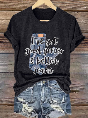 🔥Buy 3 Get 15% Off🔥Retro I've Got Good Genes & Better Jeans Print T-Shirt