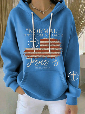 Women's Retro Faith “Normal Isnt Coming Back” Print Casual Hooded Sweatshirt