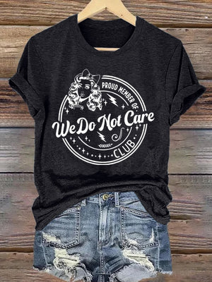 Women's Round-Neck Retro Funny Proud Member Of WDNC Club We Do Not Care Menopause Perimenopause Print T-Shirt