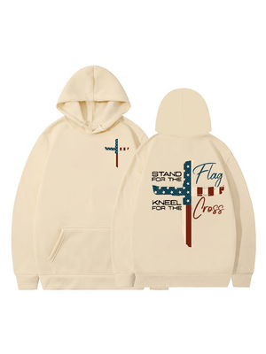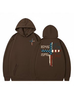 Women's Stand For The Flag Kneel For The Cross Printed Casual Hoodie