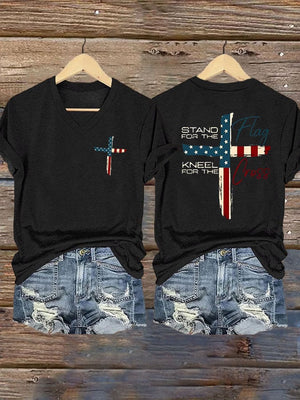 Women's Stand For The Flag Kneel For The Cross Printed Casual T-Shirt